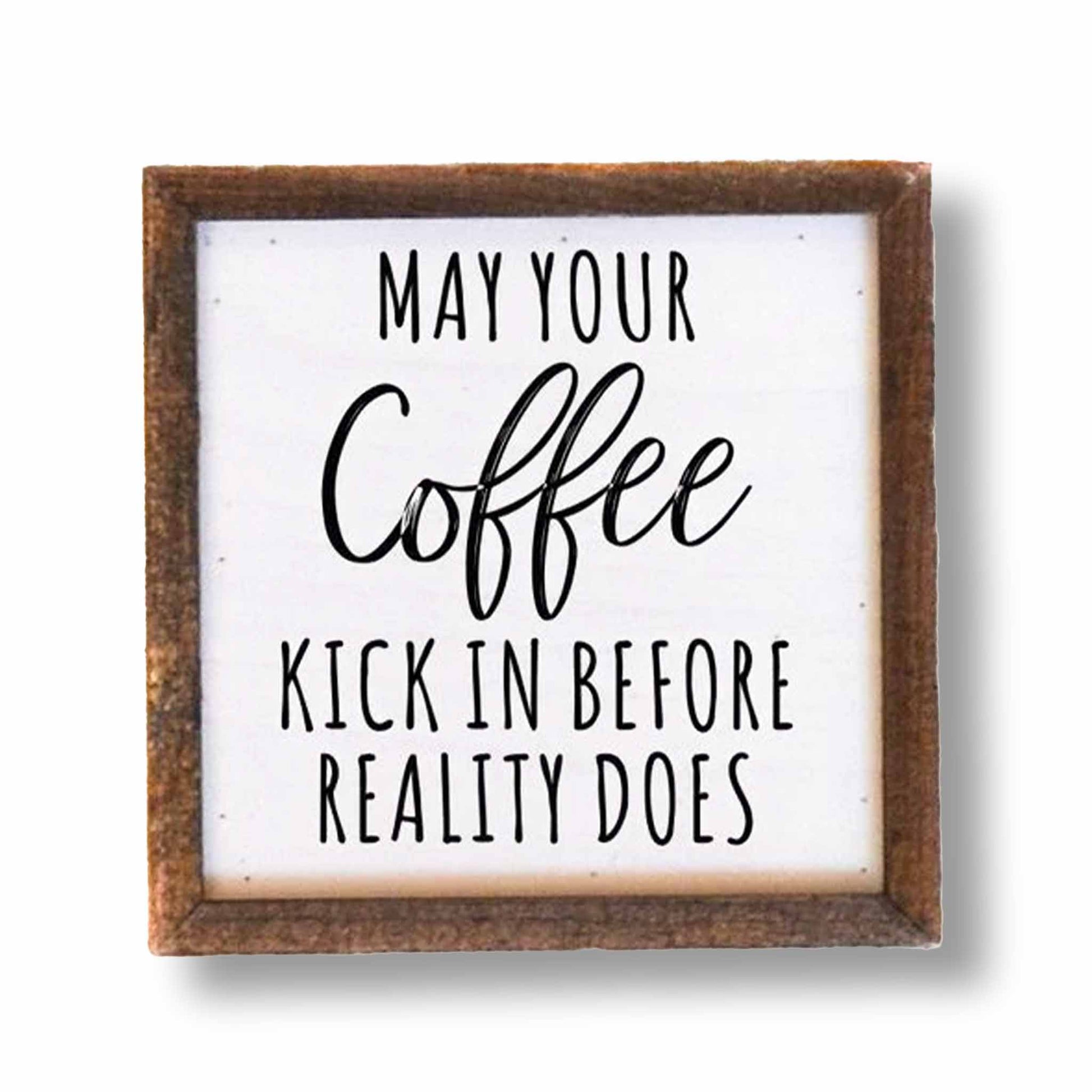 May Your Coffee Kick In Before Reality Does Wood Sign.