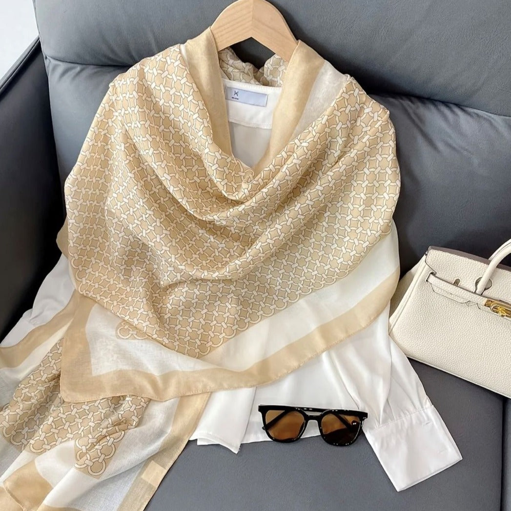 This classic printed shawl/scarf is the perfect fashion statement. Enjoy elegant protection from the sun with its vintage print aesthetic and make a timeless impression. Make a bold statement in style while feeling classic and confident.