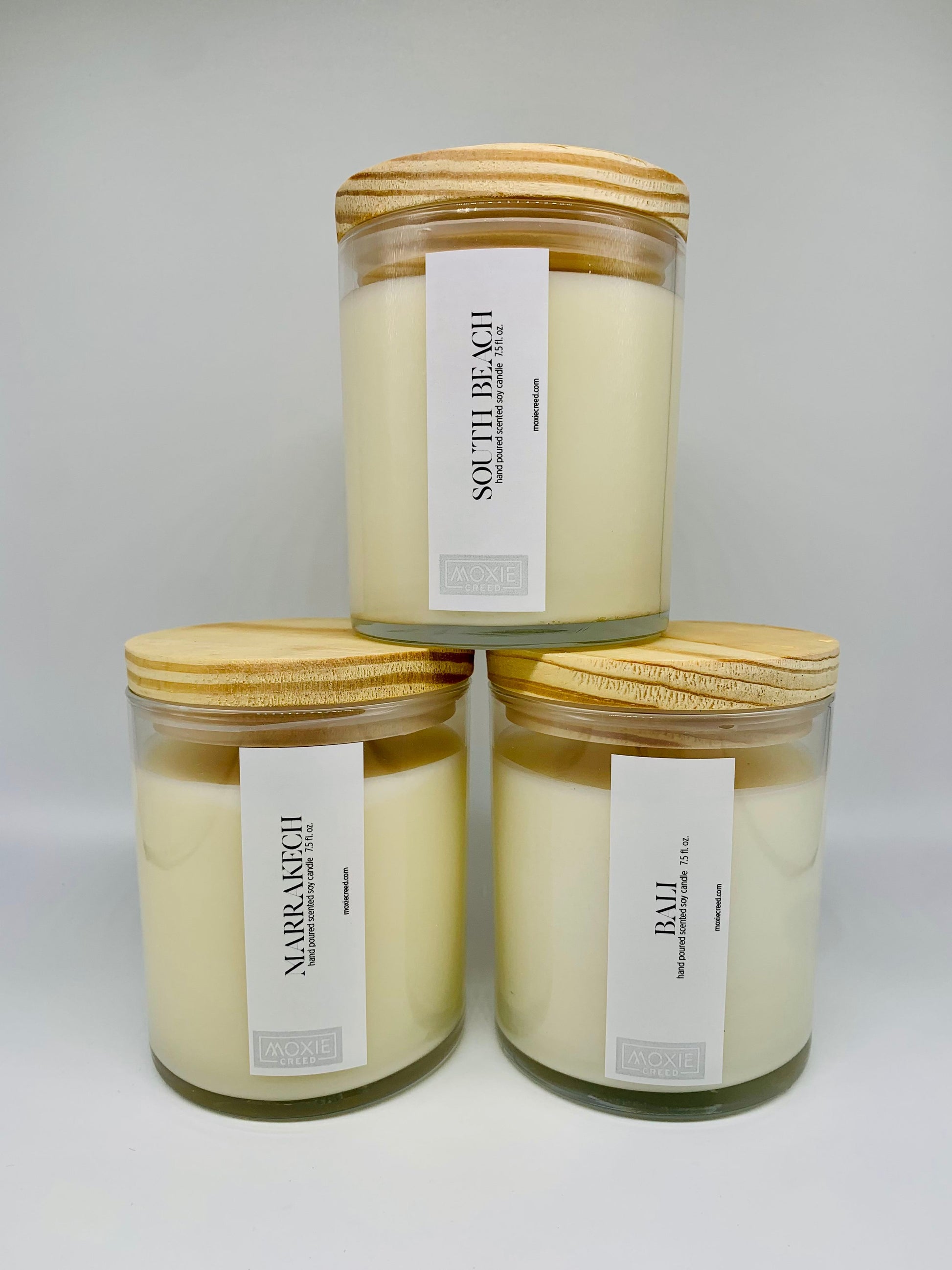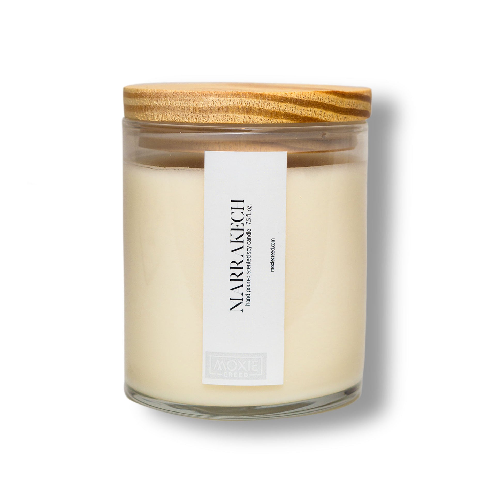Dream of exotic travels with our Marrakech candle. Bergamot, Amber, Frankincense, Myrrh, and Powder.